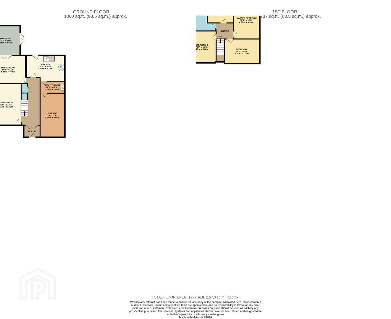 There is access off the kitchen to the utlity with a 1.5 bowl stainless steel sink and plumbed for both washing machine and tumble dryer. The utility leads through to the integral garage.