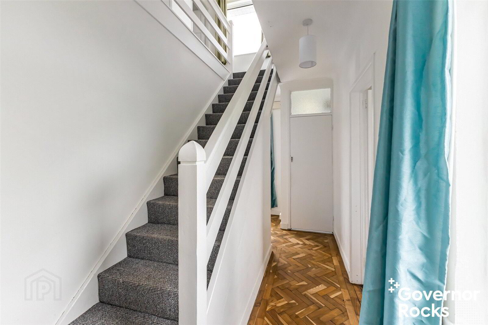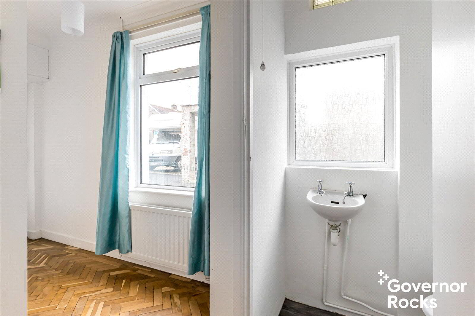 Stepping through the storm porch, the first reception room greets you with an abundance of natural light streaming through a double-glazed window, complementing the warmth of the stunning parquet flooring. A short walk down the hallway leads to a convenient downstairs cloakroom fitted with a WC and wash-hand basin. The second, larger reception room, also featuring elegant parquet flooring, provides an inviting space for relaxation and entertainment. The newly fitted kitchen is equipped with a range of high and low-level units, a brand-new oven and extractor fan, and offers direct access to the private rear garden, perfect for outdoor enjoyment.