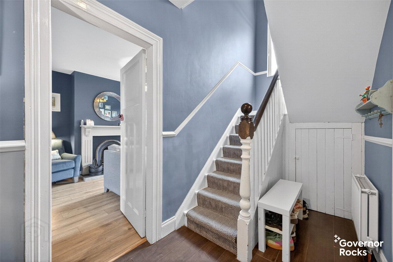 On entering, you have a small porch before heading into the hall way -showcasing period charm.