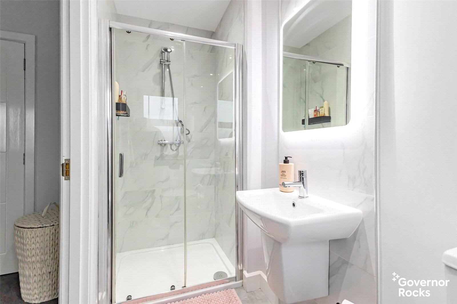 The master bedroom features a stylish en-suite shower room, finished in elegant marble-effect décor for a calm boutique – hotel feel.