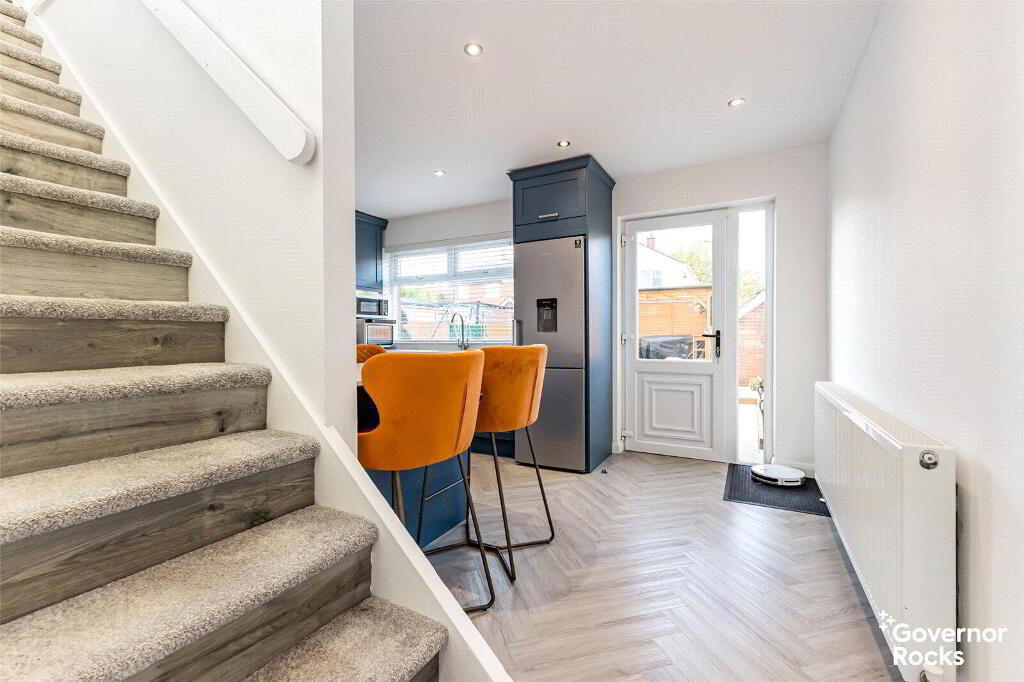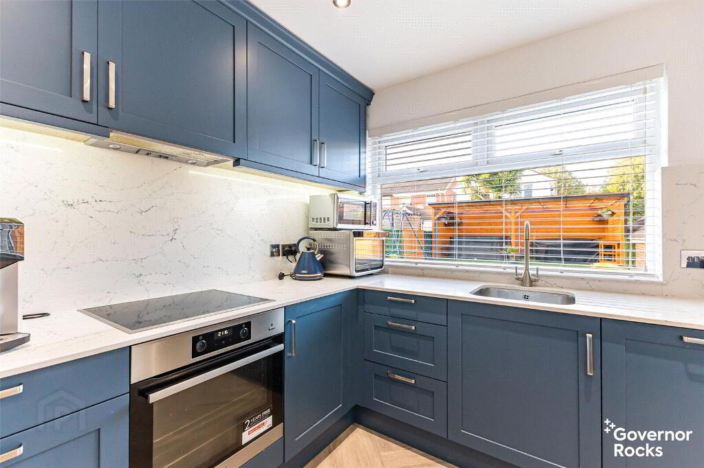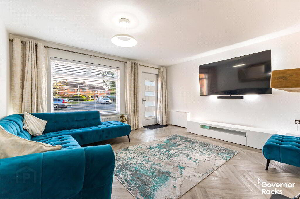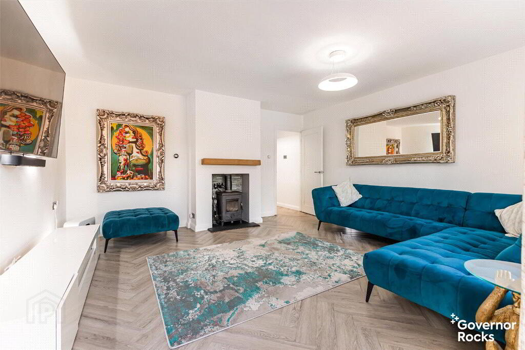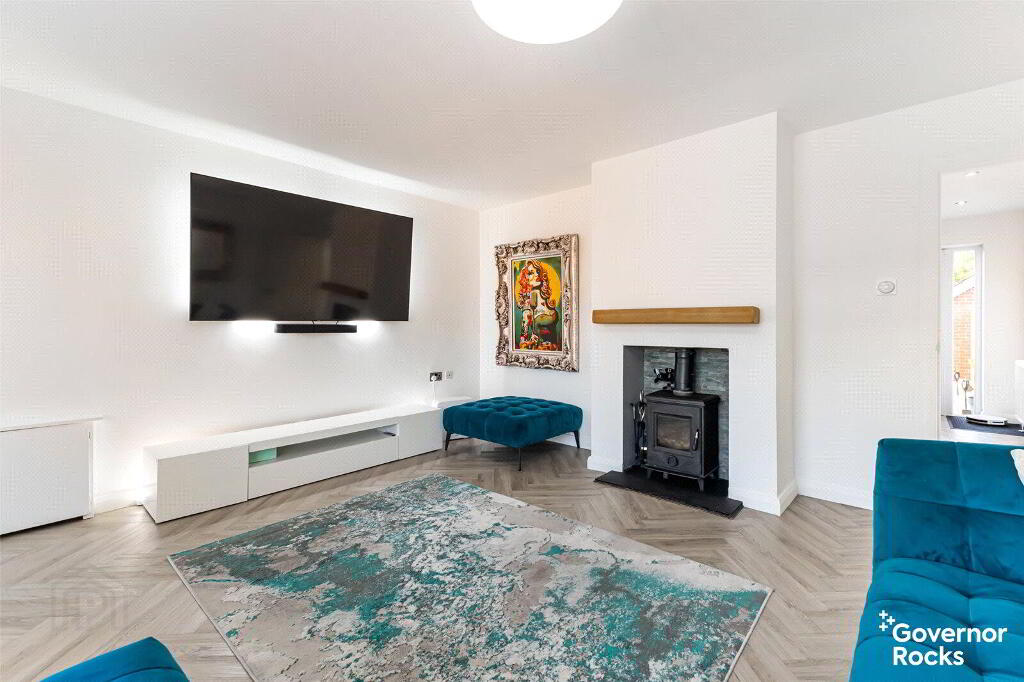 From the moment you arrive, the appeal is undeniable. A smart tarmac driveway provides ample space for several cars and is complemented by a garage with a sleek electric roller shutter door. Stepping inside, you are welcomed by a light-filled lounge where freshly painted crisp white walls and newly laid flooring create an airy, contemporary feel. A wood-burning stove sits at the heart of the room, ensuring warmth and cosiness on cooler evenings and adding a touch of character to this modern space.