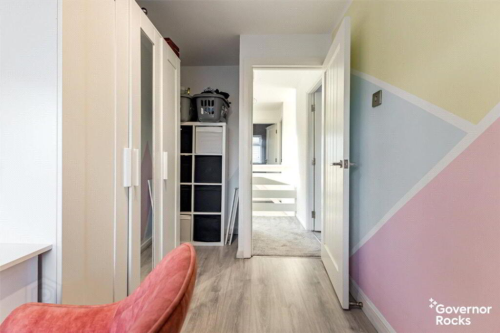 Upstairs, three inviting bedrooms provide flexible living to suit a range of lifestyles. The principal bedroom offers generous proportions and large built-in wardrobes, while the second bedroom also provides space for fitted storage if desired. The third bedroom, currently set up as a fabulous dressing room, is a versatile space that can easily adapt to suit individual needs.