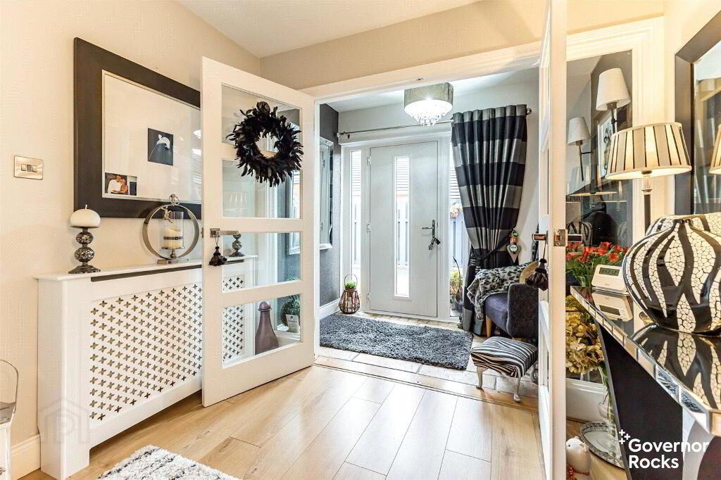 From the moment you arrive, the sense of space is undeniable. A generous tarmac driveway welcomes you, with ample parking for several cars, a boat, caravan or motorhome, while the detached garage with its electric roller shutter door and plumbed utility facilities ensures practical needs are effortlessly met. Step inside to a bright, light-filled hallway, where an immediate sense of calm invites you to pause and relax.
