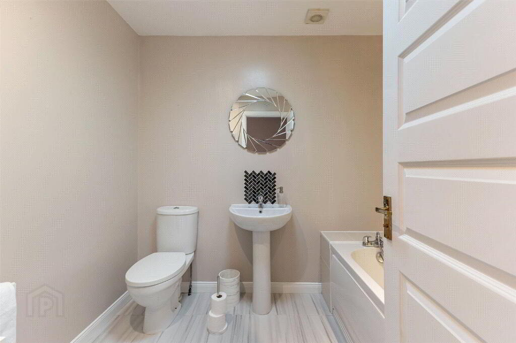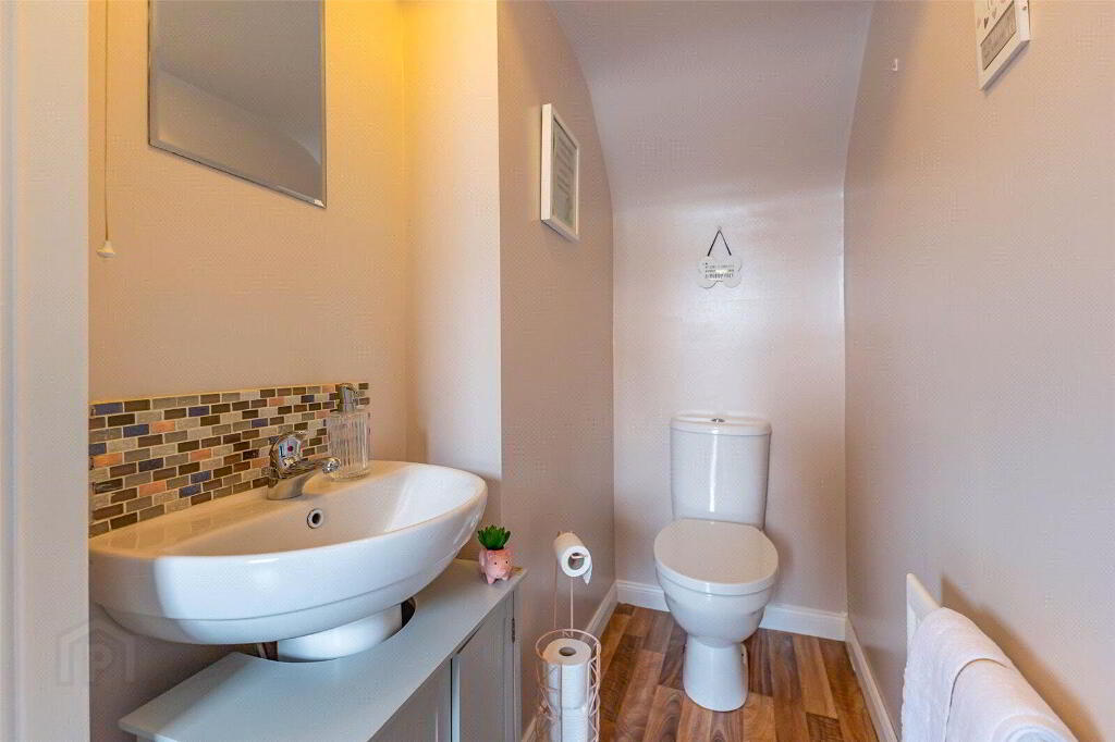 A flight of quarter turn stairs takes you to the first floor of this wonderful home. Here, you find two generous double bedrooms, both affording great privacy. The family bathroom is fitted with a three-piece suite incorporating bath with shower over, wc, and wash-hand basin. A storage cupboard is also located on the landing.