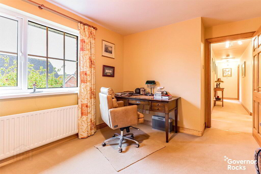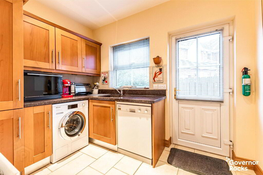 Designed with growing families and modern lifestyles in mind, the accommodation is bright, flexible and exceptionally well-proportioned. The layout lends itself perfectly to those who require space for family life, entertaining or home working. The ground floor features a welcoming drawing room with an open fire set within a sandstone surround, and a comfortable lounge with uPVC sliding patio doors leading directly to the rear garden. The kitchen, complete with integrated appliances, opens seamlessly into a casual dining area and a delightful conservatory, flooding the space with natural light and offering an inviting setting for relaxed family gatherings or quiet moments overlooking the garden. Practicality has also been carefully considered, with a convenient downstairs cloakroom equipped with wc, and separate utility room providing direct access to the integral garage, and further access to the side of the property.
