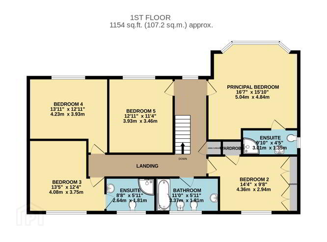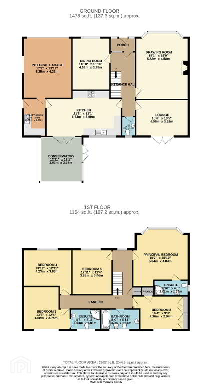 Upstairs, the sense of space continues with five generous bedrooms, including a superb Principal Bedroom with its own en-suite shower room. Bedroom Three also benefits from an en-suite, making it ideal for guests or older children, while the remaining bedrooms are served by a well-appointed four-piece family bathroom.