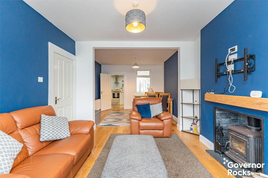 Practical features include double-glazed windows, a modern gas boiler, and the ambiance of a wood-burning stove, making this home both energy efficient and inviting. Off-street parking and easy garage access along the side return complete the outdoor space.