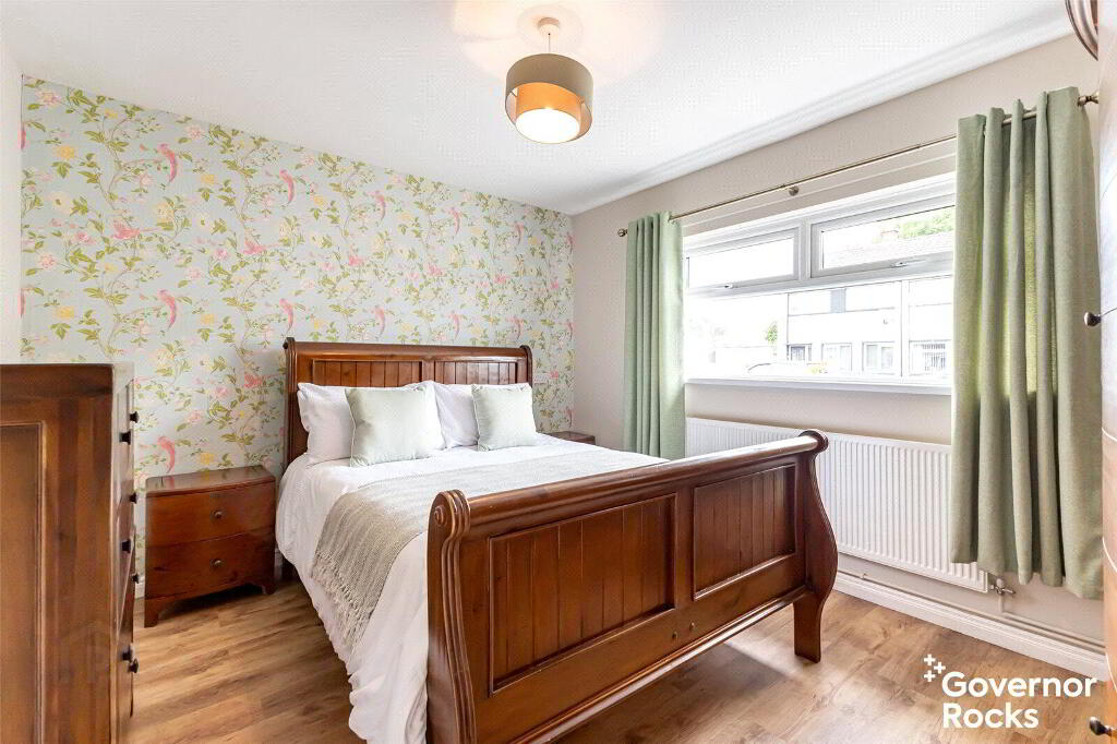 Welcome to this immaculate two-bedroom bungalow, perfectly situated in the charming village of Conlig, offering easy access to Bangor, Newtownards, and Belfast. As you enter, you are greeted by a bright and airy hallway. To the left, the spacious lounge is furnished with two comfortable sofas and a coffee table, and features a cosy fireplace, creating a warm and inviting atmosphere. To the right, you'll find the principal bedroom, a generously sized double room complete with a stylish sleigh bed and wardrobe. The second bedroom, a smaller double, is equally well-presented and comfortable.