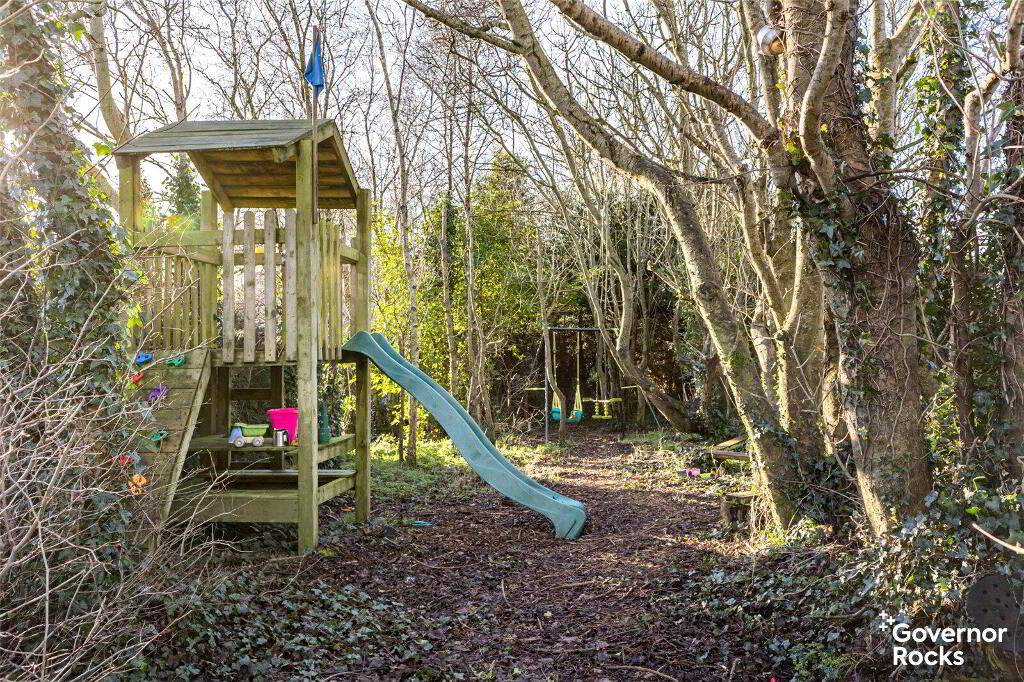 Externally, the property boasts a variety of attractive garden areas. The main front garden is laid mainly to lawn, complemented by a beech hedge, granite patio and pathways. To the rear, there is extensive space suitable for sheds or a workshop, along with a charming natural thicket that even includes a working well.
