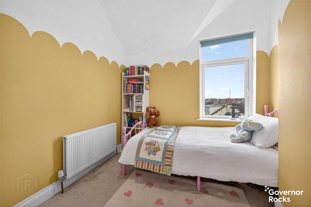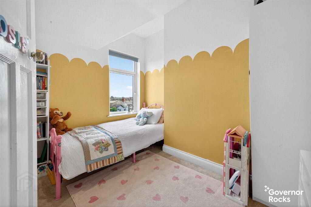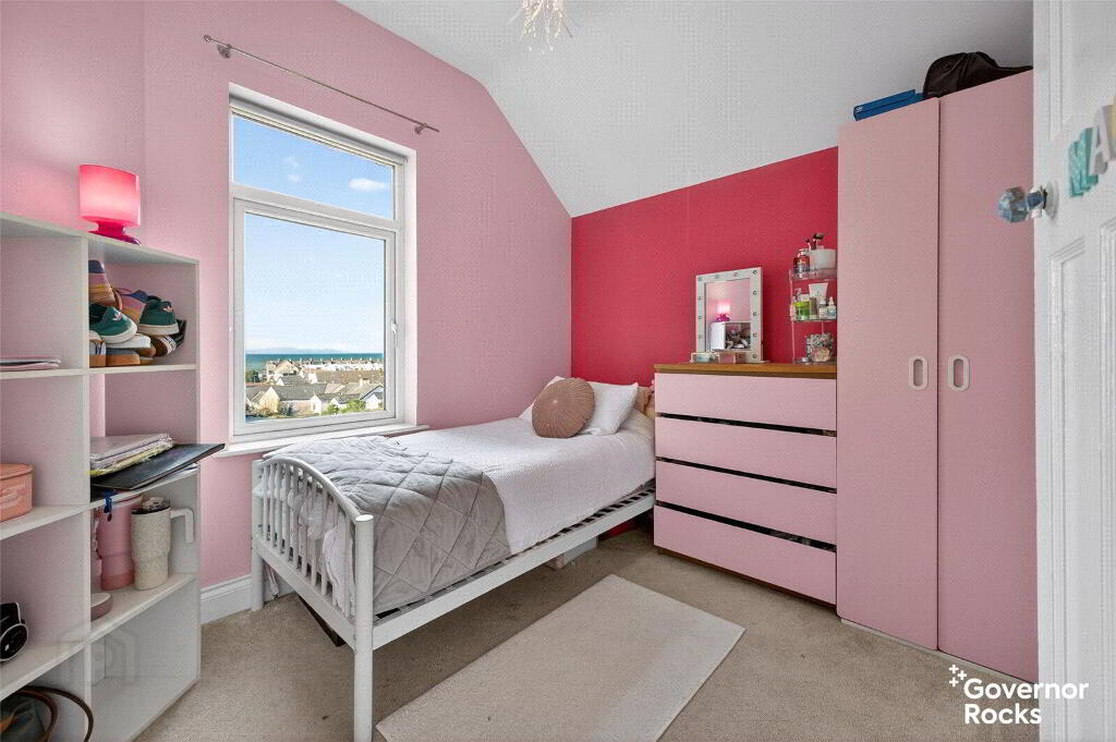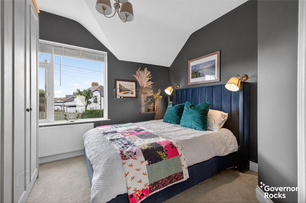 Upstairs there is a recently refurbished bathroom with a mains shower over a P bath, vanity cupboard & sink, wall radiator and period style tile flooring. The 2 smaller bedrooms are at the rear of the property- one of which benefits from a sea view. The master is at the front of the property with build in wardrobes – perfect for displaying calm and order and aiding a peaceful retreat.