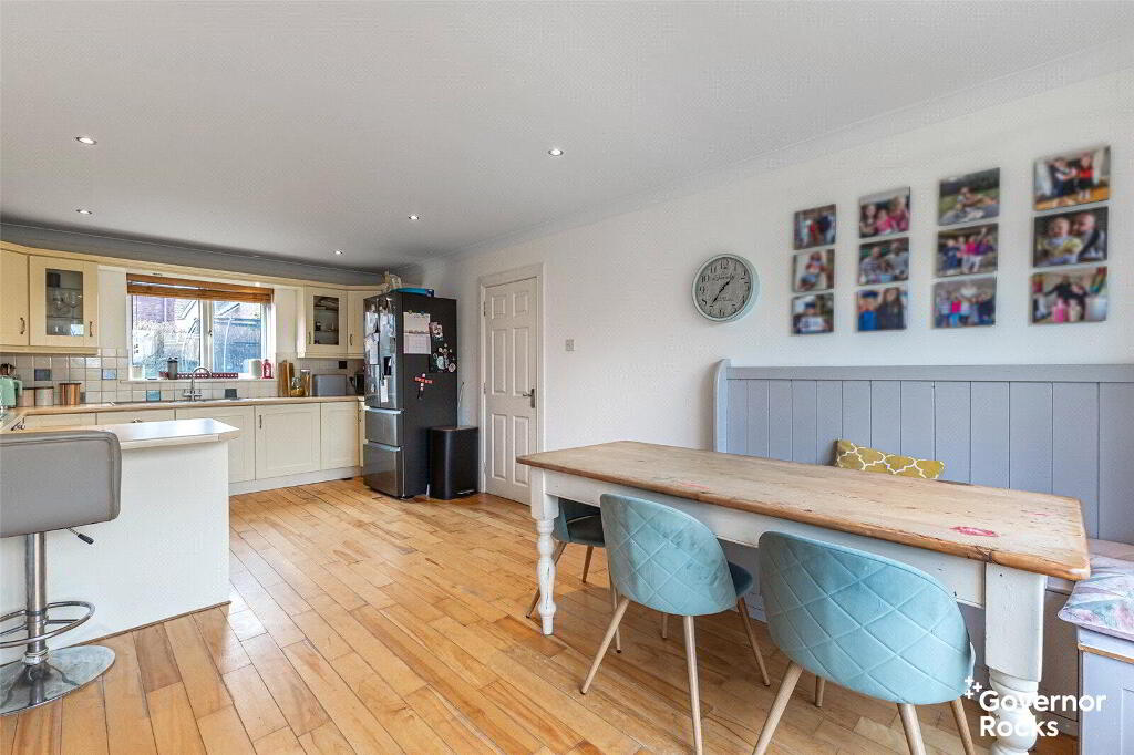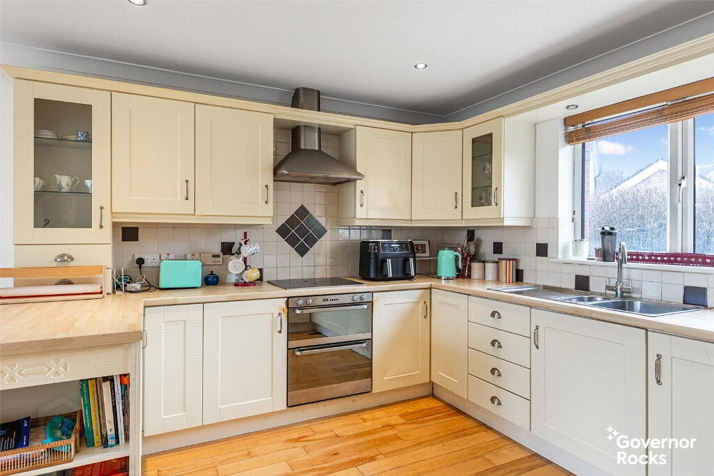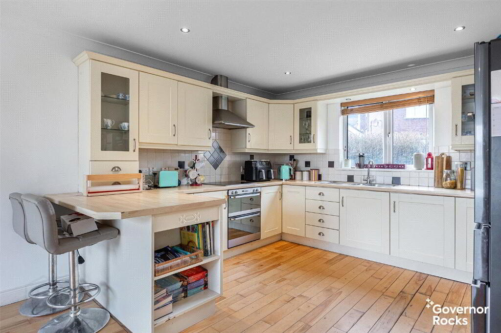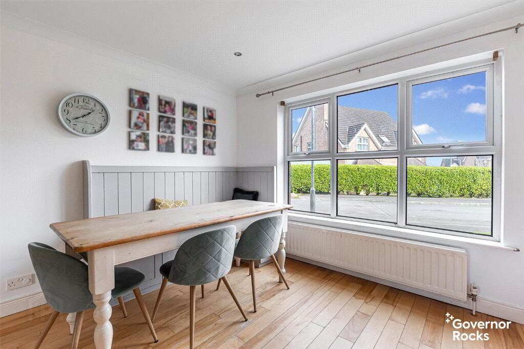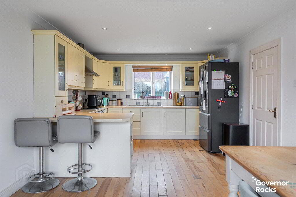 A superb open plan kitchen and dining area forms the heart of the home — perfect for entertaining and day-to-day family life. The kitchen features an excellent range of high and low cabinetry, generous worktop space, and a pleasant outlook over the rear garden.