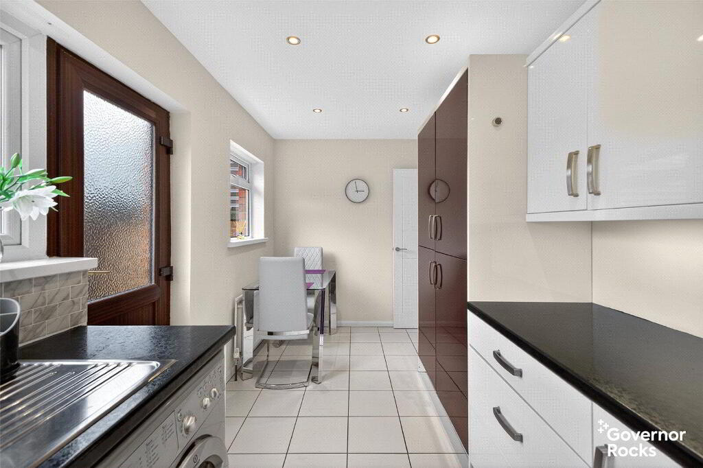 To the rear of the property is a sizeable kitchen/diner fitted with a range of sleek high and low level cabinetry. The dining area provides space for a small table, ideal for casual dining, and the kitchen offers direct access to the private rear garden.