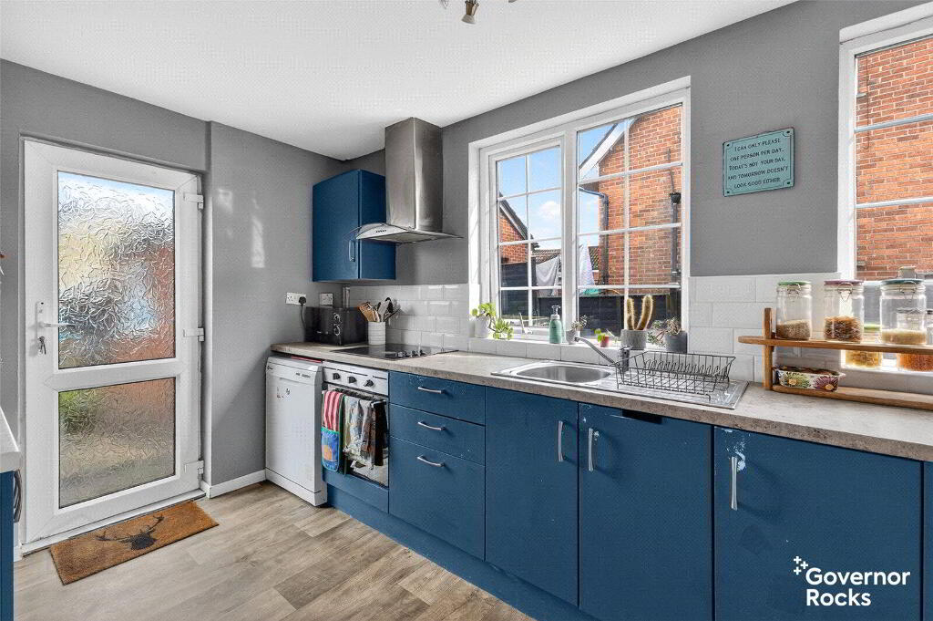 Through to the kitchen which offers a wide range of high and low shaker style units.