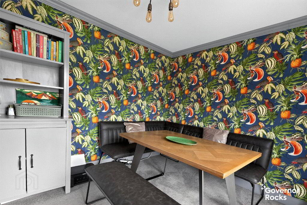The ground floor offers a seamless flow starting with the cosy living room centred around an open fire with traditional tiled hearth.