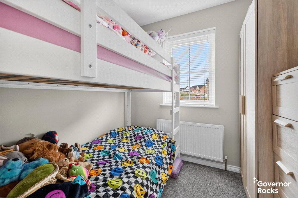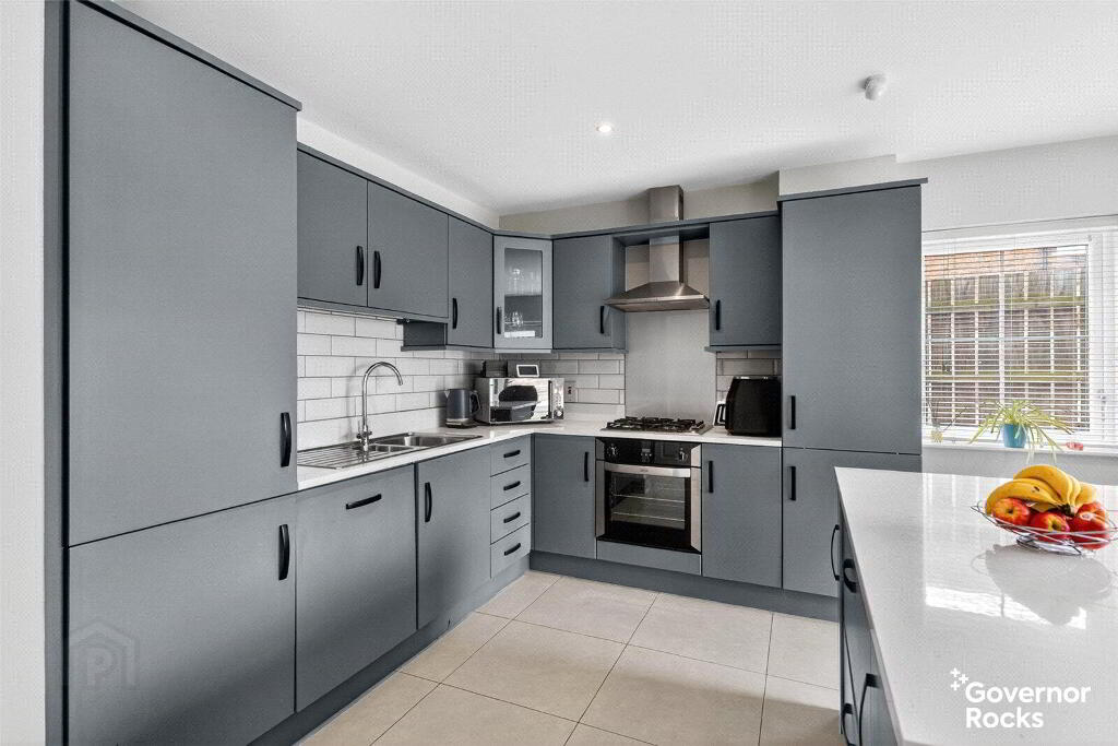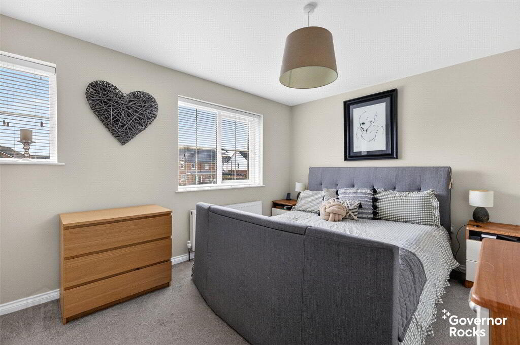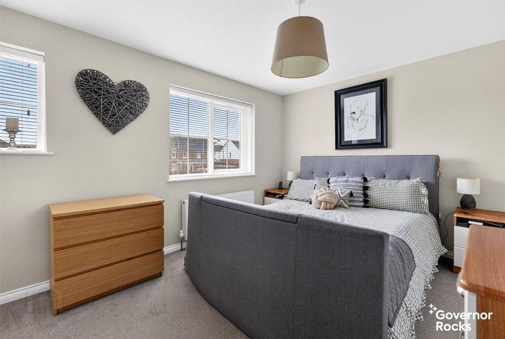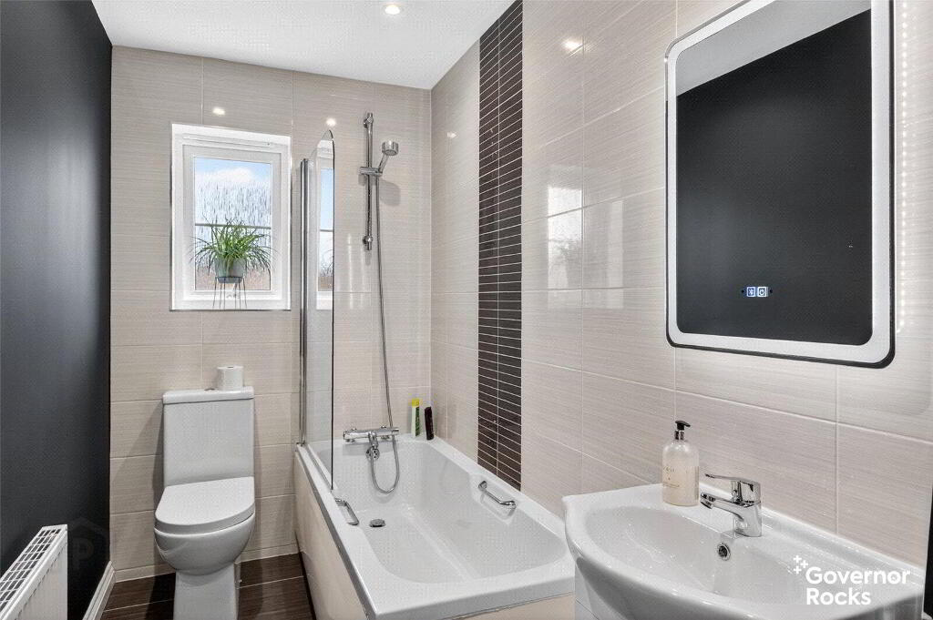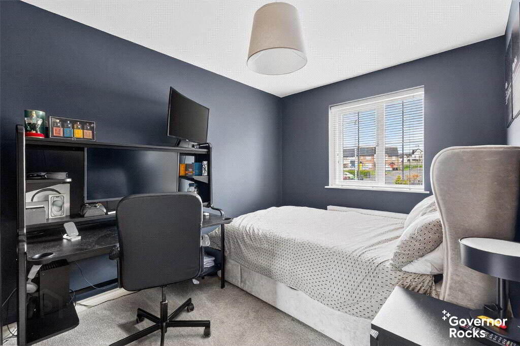 Upstairs, the property comprises three well-proportioned bedrooms, making it ideal for families or those working from home. The principal bedroom offers an added touch of luxury with its own en-suite shower room and two generous built-in wardrobes. The remaining bedrooms are served by a contemporary family bathroom fitted with a modern three-piece suite.