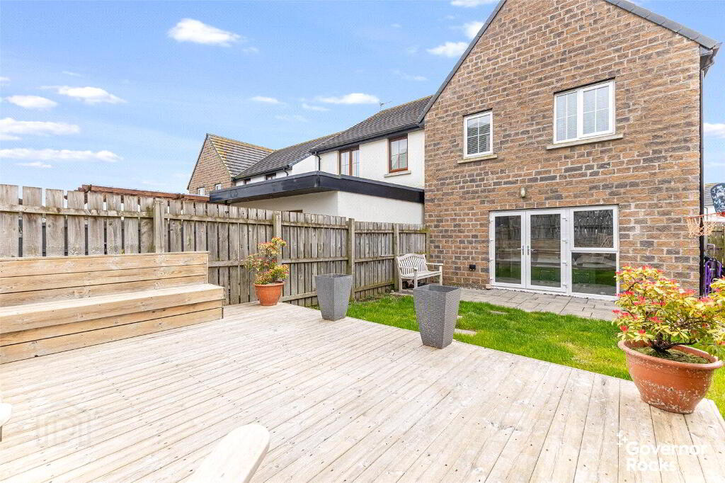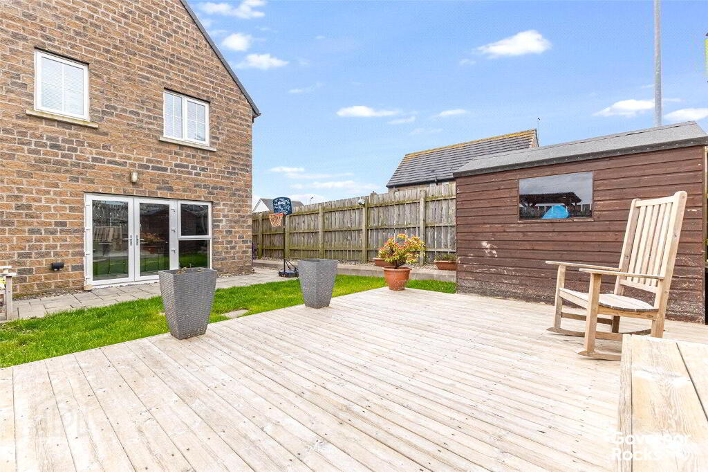Externally, the fully enclosed rear garden provides a fantastic outdoor space, complete with a paved patio, lawn, and a raised deck area, perfect for relaxing or entertaining.