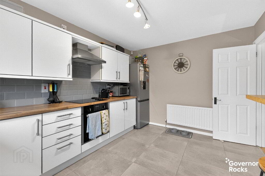 Upon entering the property, you are welcomed by a bright and spacious hallway that sets the tone for the rest of the home. The principal reception room is positioned to the front and benefits from an abundance of natural light through twin windows, complemented by attractive wooden effect flooring and a striking feature fireplace with surround, creating a warm and inviting space ideal for family gatherings. To the rear, the recently updated kitchen is both stylish and practical, fitted with a range of modern high and low level units, integrated oven and hob, and direct access to the garden, making it perfectly suited to everyday family life. A second reception room overlooks the rear garden and features glazed French doors, offering excellent flexibility as a formal dining room, additional lounge, or indeed a home office for those requiring a dedicated workspace.