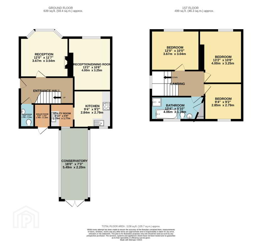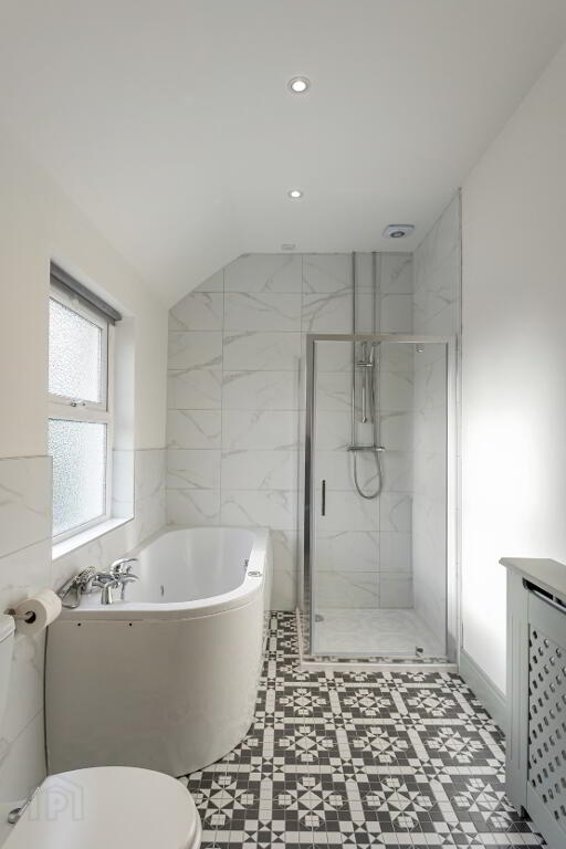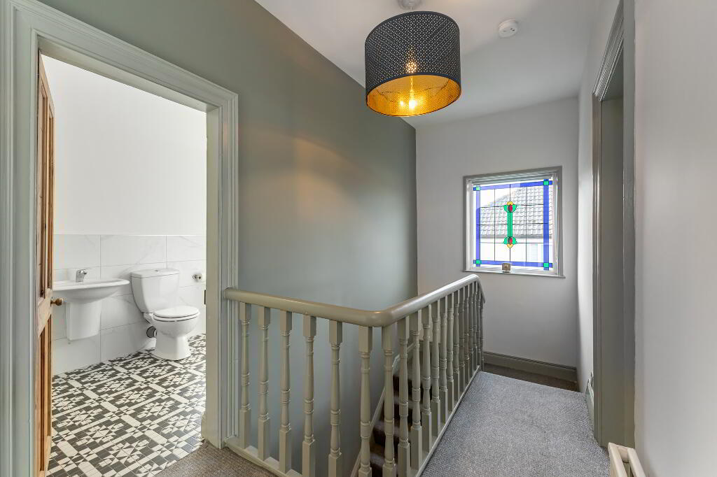 Upstairs provides three bedrooms, two large doubles and a smaller double. The family bathroom also occupies the first floor, equipped with a four-piece suite including bath, shower cubicle, wash-hand basin and wc.